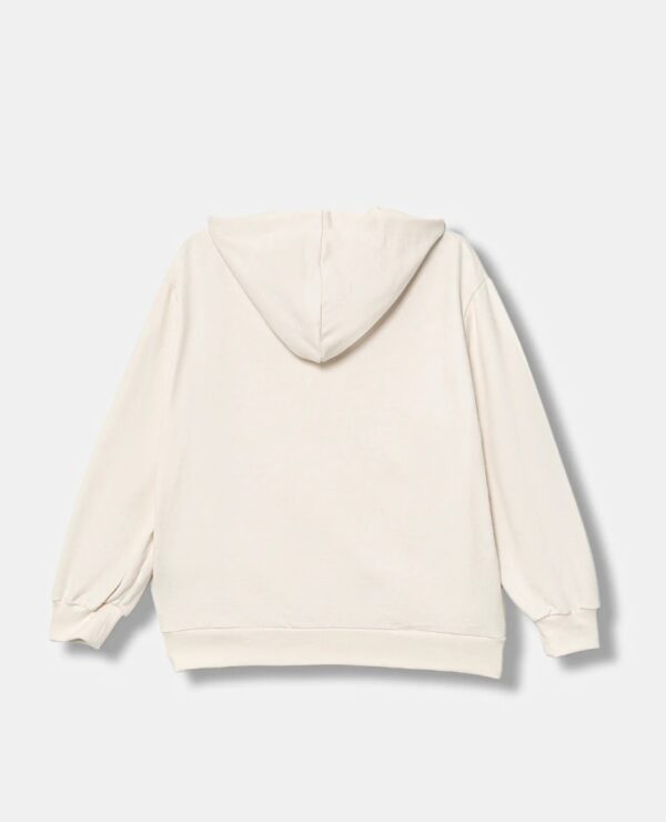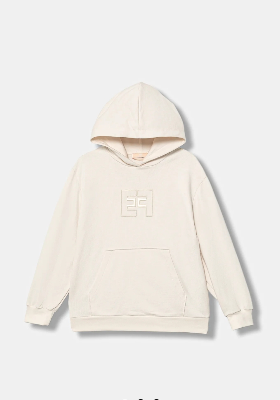 Felpa con cappuccio Elisabetta Franchi per bambina a maniche lunghe con logo al centro del petto nel colore latte. E’ caratterizzata anche da un tascone centrale in basso.