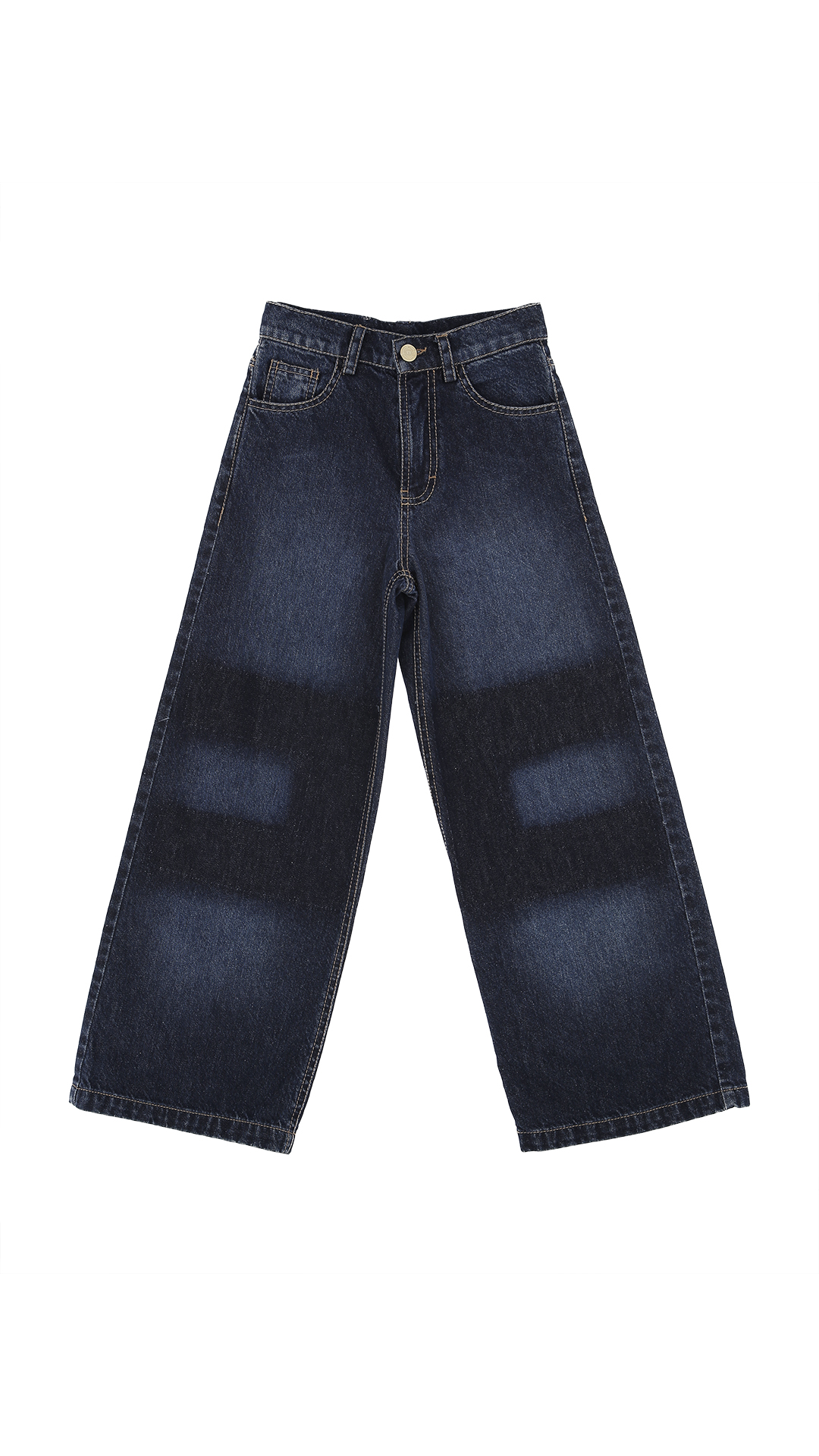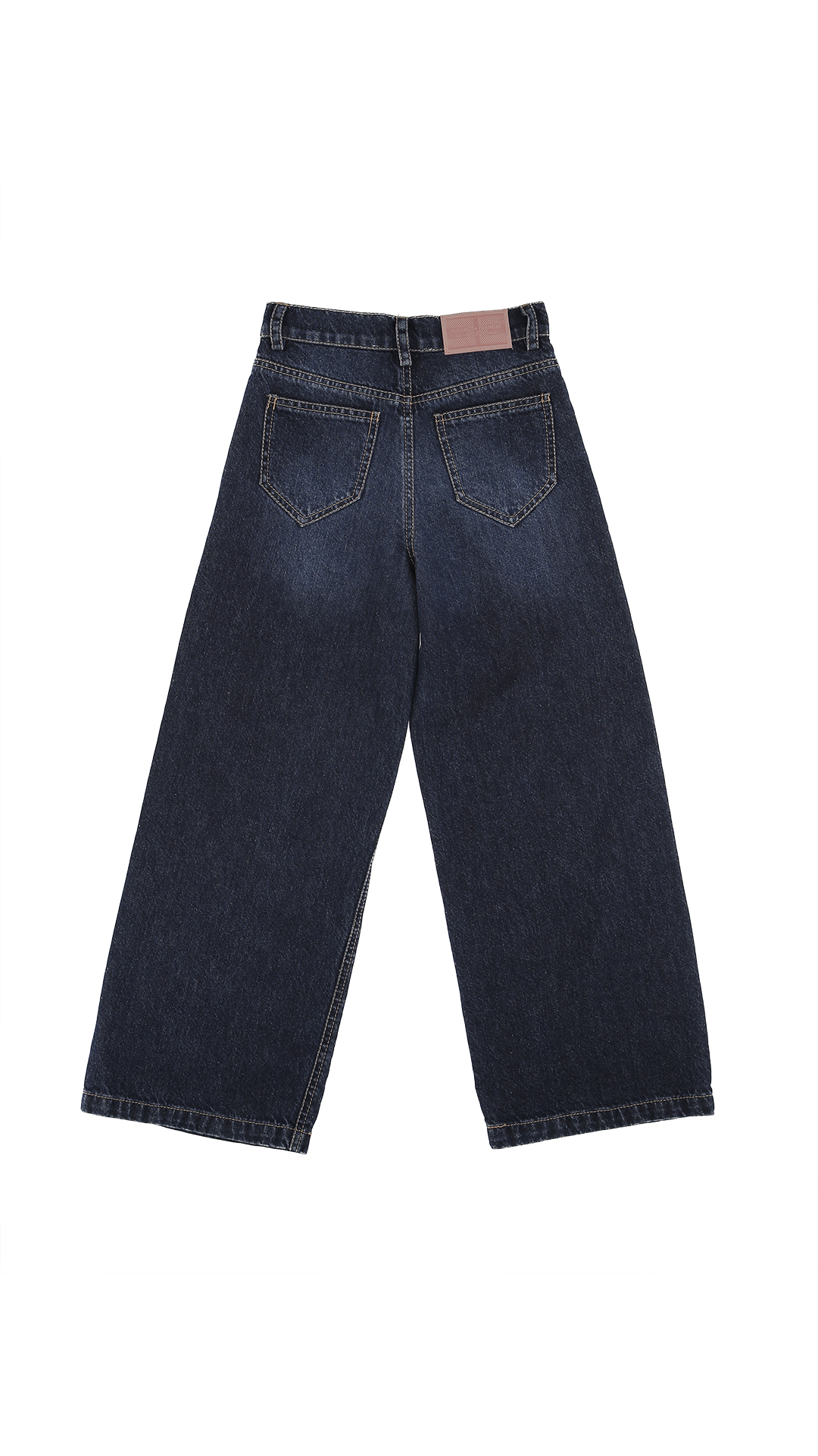 Jeans Elisabetta Franchi per bambina blu scuro a vita alta con monogramma sulla parte frontale. E’ caratterizzato da 5 tasche con chiusura bottone e zip.
